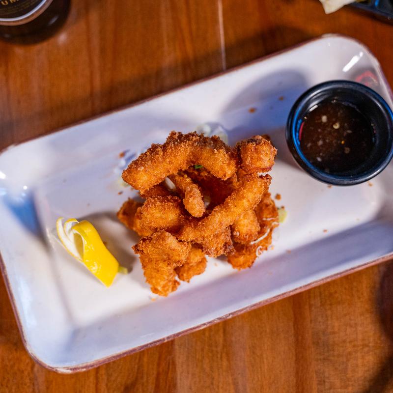 Shrimp tempura, asparagus, octopus, jalapeno, garlic aioli, faux-nagi, ponzu.